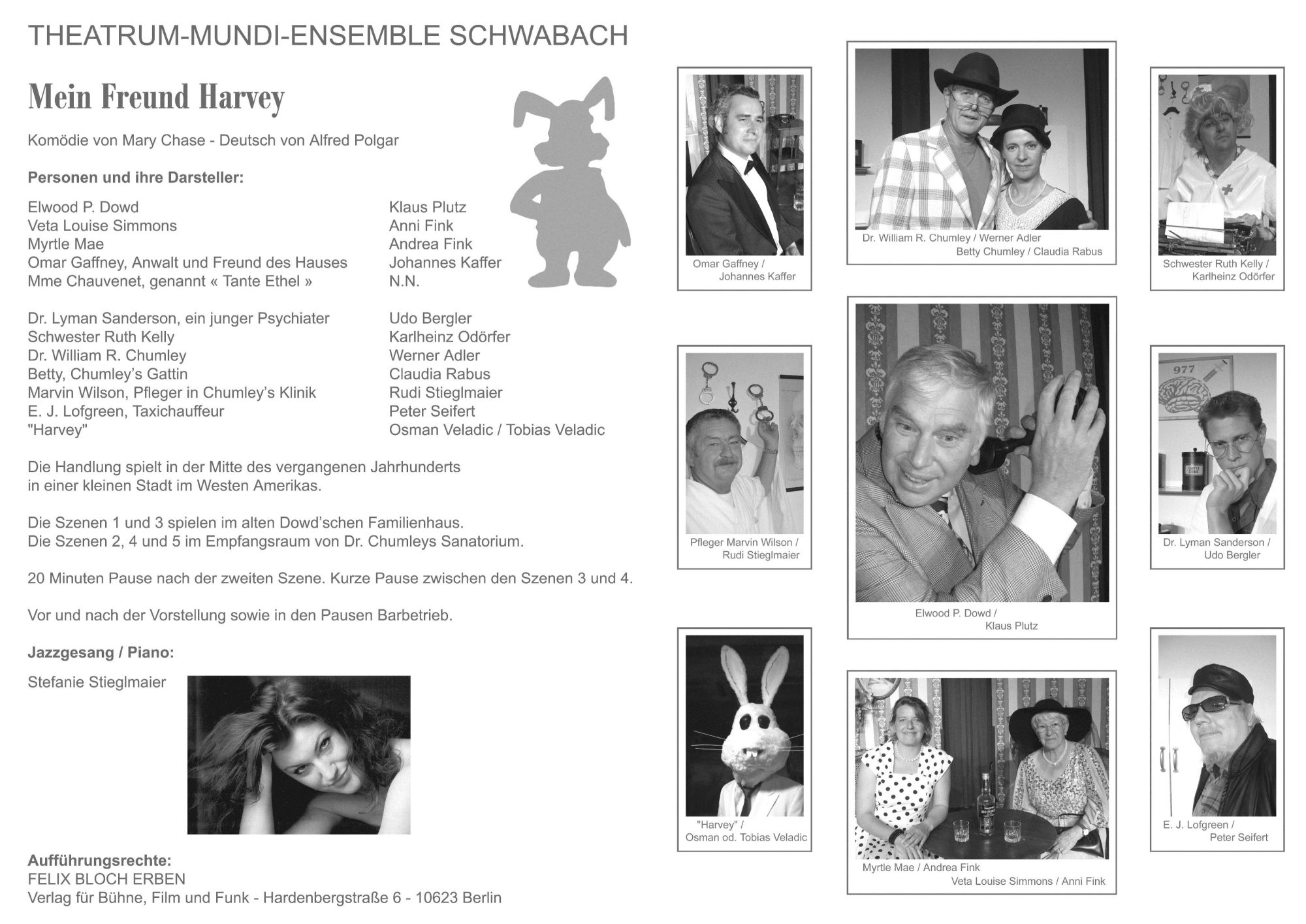 Vom Theatrum-Mundi-Ensemble Schwabach wurde das Stück „Mein Freund Harvey“ in den Jahren 2007 und 2008 im Galerie Gaswerk in Schwabach aufgeführt.