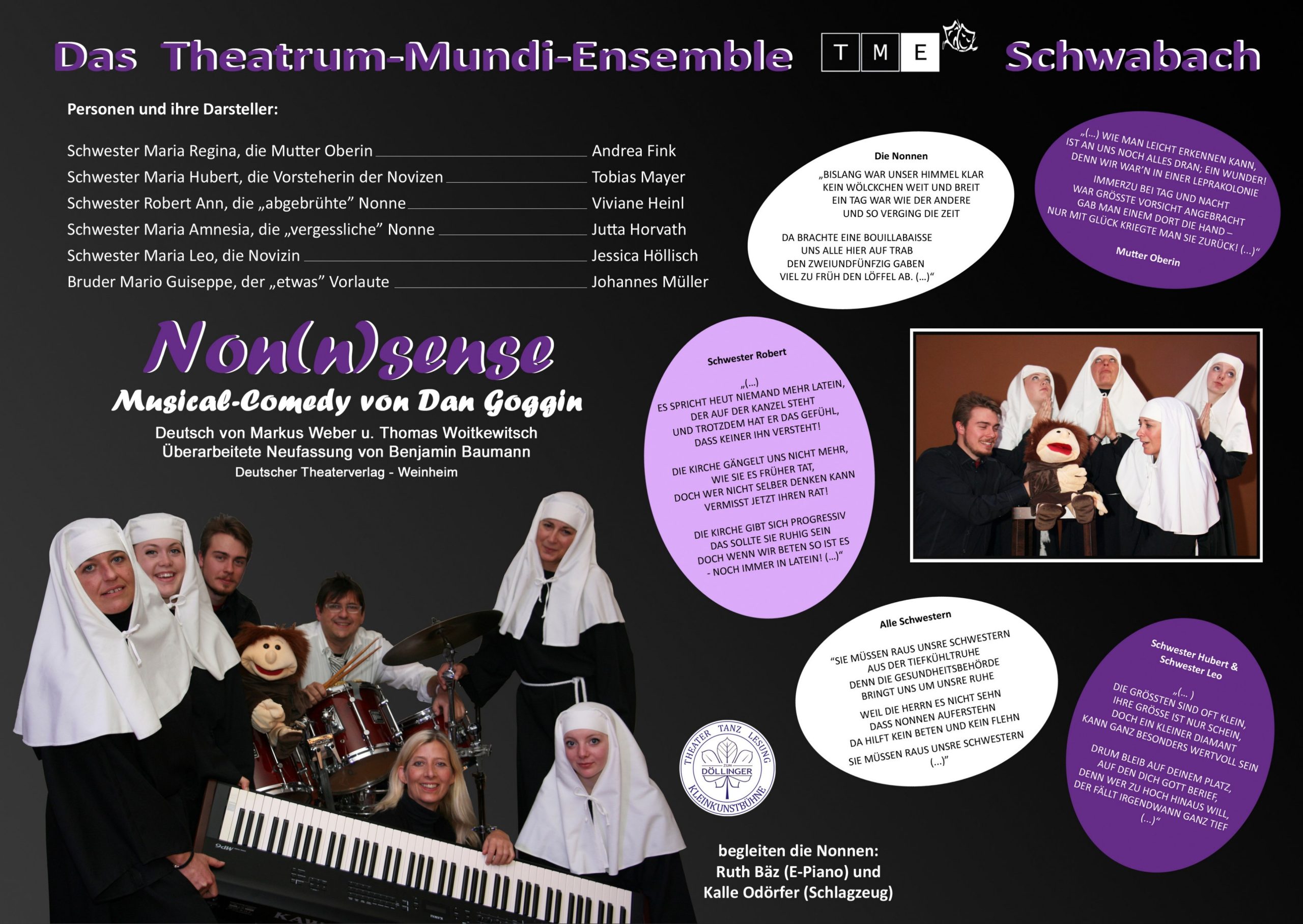 Eine amüsant-skurrile Kloster-Story, mitreißende Bühnensongs mit Live-Musik und eine neue Schwabacher Veranstaltungsstätte mit ganz besonderem Ambiente: Das alles bietet die Neuproduktion des Theatrum-Mundi-Ensembles ab November 2014.