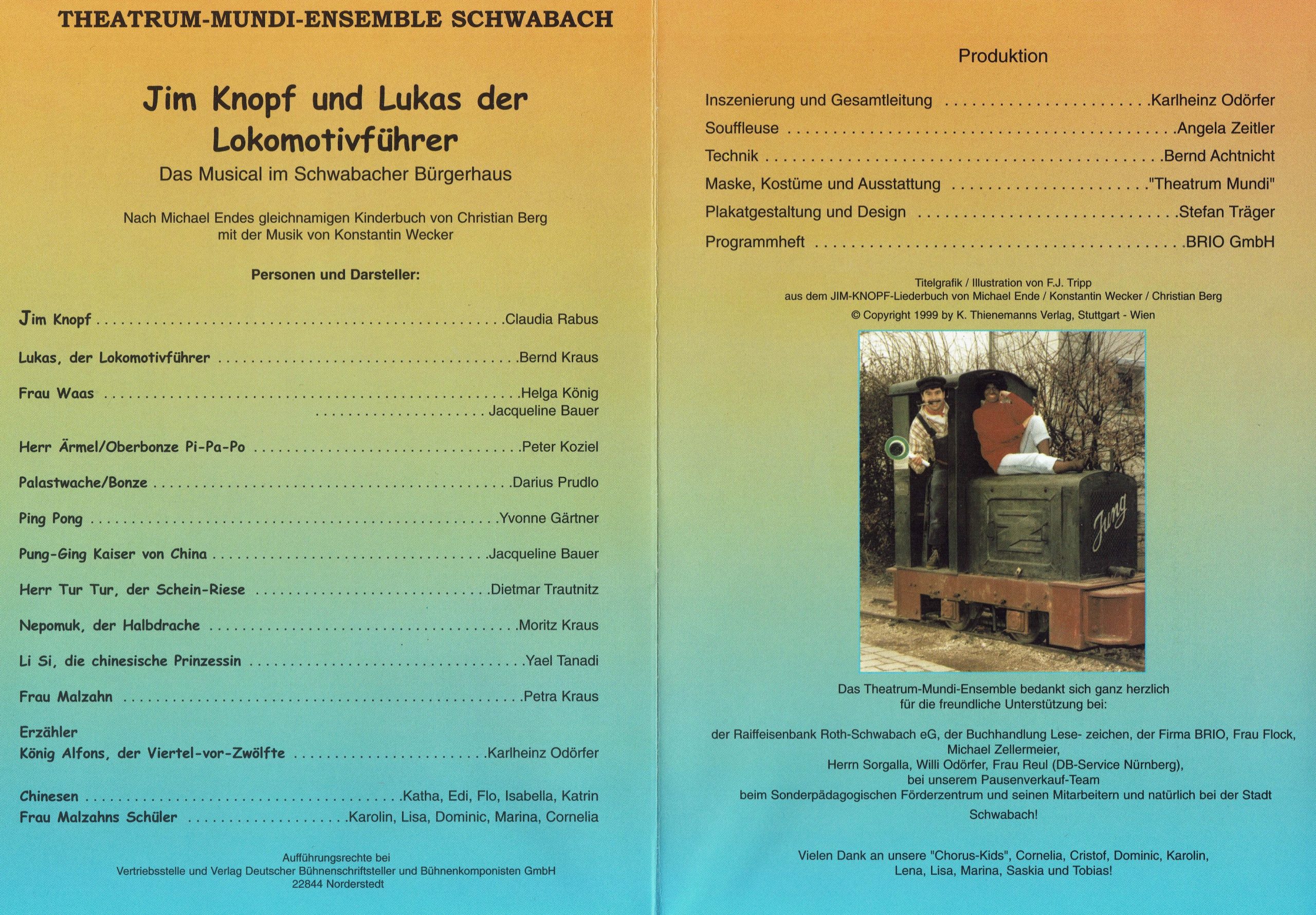 Dem Theatrum-Mundi-Ensemble Schwabach gelang es, sich als eine der ersten nicht-professionellen Theaterformationen die Aufführungsrechte für dieses attraktive, moderne Kindermusical zu sichern.